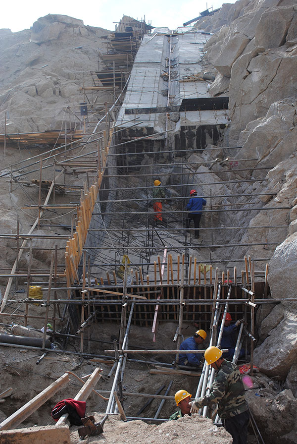 大柳溝水庫位于新疆維吾爾自治區(qū)巴里坤縣莫?dú)J烏拉山南坡,距哈密市154km。地理位置東經(jīng)93°35.5'-38',北緯43°35'-37'。水庫距巴里坤縣54.0km,有鄉(xiāng)村公路相通,交通比較便利。工程屬攔河式水庫。承擔(dān)下游灌溉、人畜用水的任務(wù),同時兼防洪功能,水庫控制灌溉面積1.2萬畝。水庫總庫容372.42萬m3,最大壩高36.33m,壩頂長168.23m。樞紐工程由攔河壩,導(dǎo)流放水洞,溢洪道等建筑物組成。工程規(guī)模屬小(1)型。
